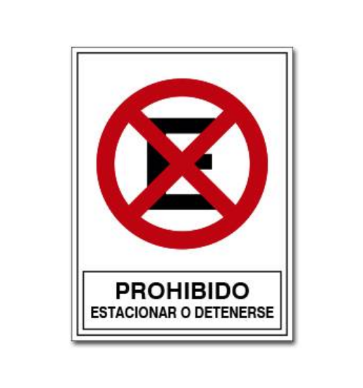 CARTEL CHAPA 60X60 PROHIBIDO ESTACIONAR Y DETENERSE