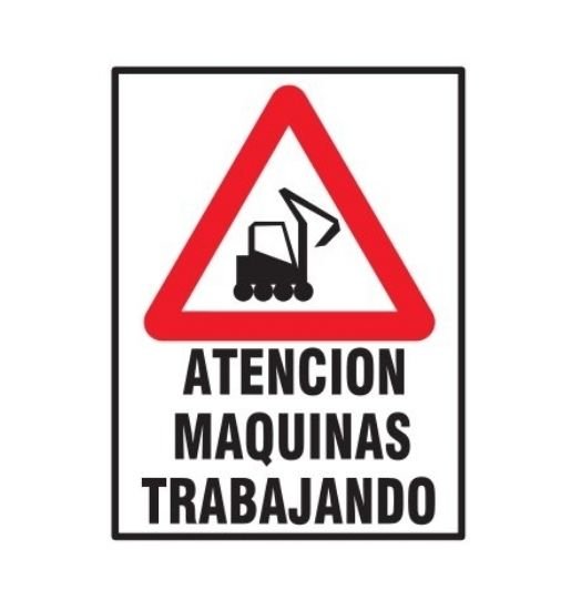 CARTEL CORRUGADO 50X70CM ATENCION MAQUINAS TRABAJANDO
